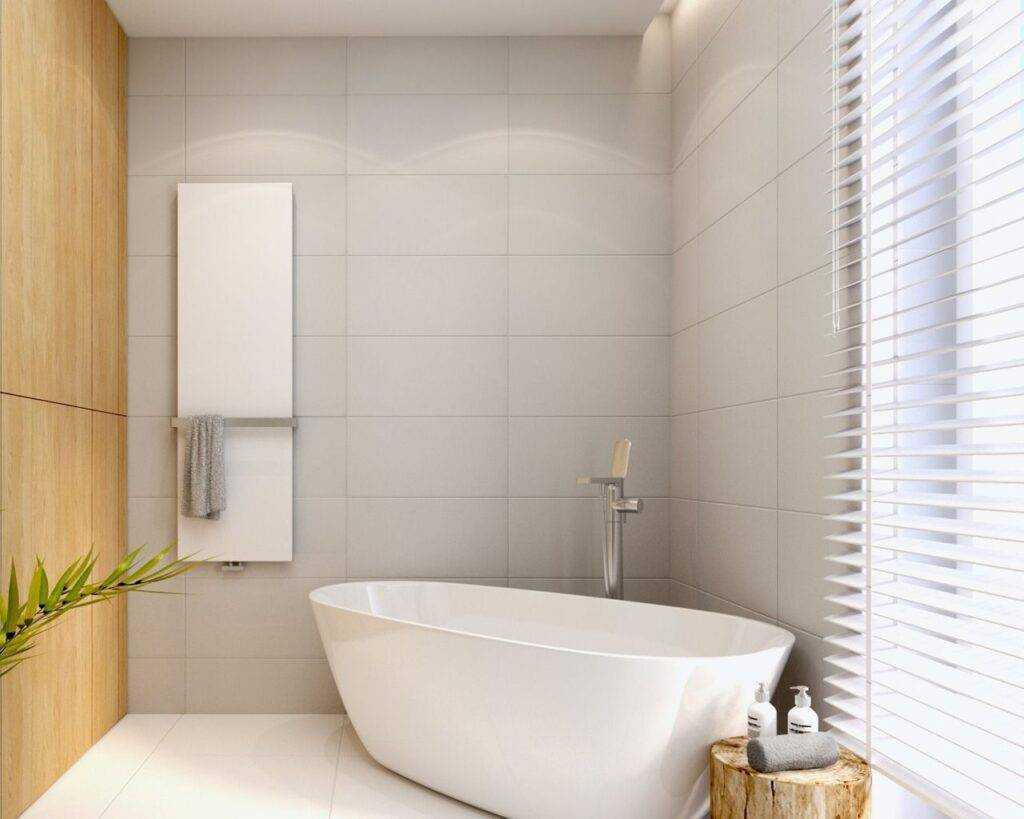 - В маленькой ванной плитку лучше выкладывать поперек, а не параллельно форме потолка.